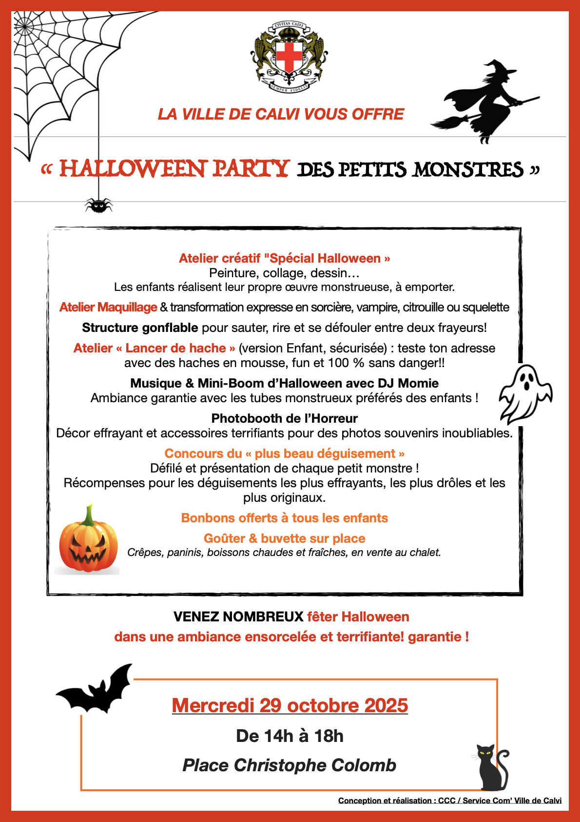 ENFANCE ET JEUNESSE / ANIMATION – La VILLE DE CALVI vous offre l’« Halloween Party des Petits Monstres »
