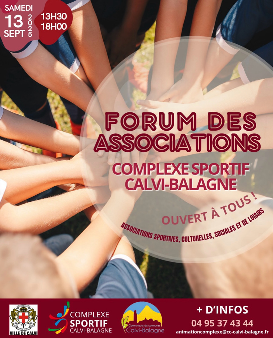 Lors du « Forum des Associations », organisé samedi 13 septembre 2025 au Complexe Sportif Calvi-Balagne, le CCAS de la Ville de Calvi programmera, de 9h45 à 12h, un temps d'échanges, animé par Madame Cendrine Delattre, de la Maison de Protection des Familles de la Haute-Corse.