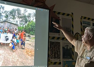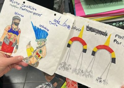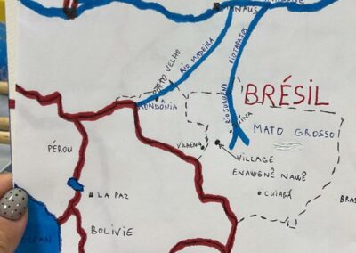 En fin de semaine dernière, la veille de la conférence, intitulée « A la rencontre des Enawenê Nawê…Un voyage humanitaire au Mato Grosso », organisée par le Centre Communal d’Action Sociale, dans le cadre du cycle « Les Rendez-Vous de la Culture et du Patrimoine », la médiatrice culturelle Bindu Masson accueillait, vendredi 16 octobre, en présence de l’écrivain, les élèves des classes de CP/CE1/CE2 de mesdames Garcia et Migliore, dans la salle communale « Micro-Folie ».