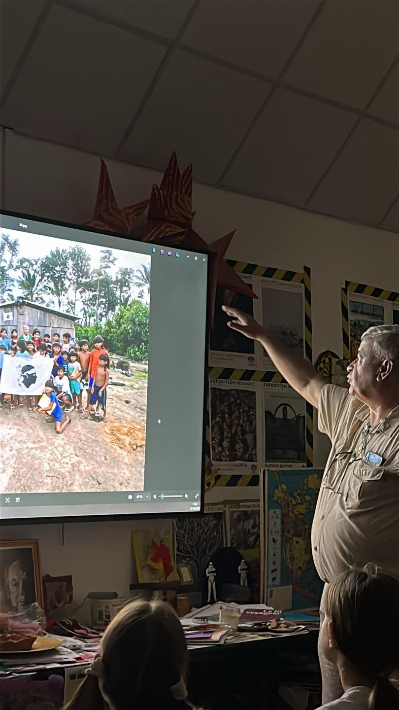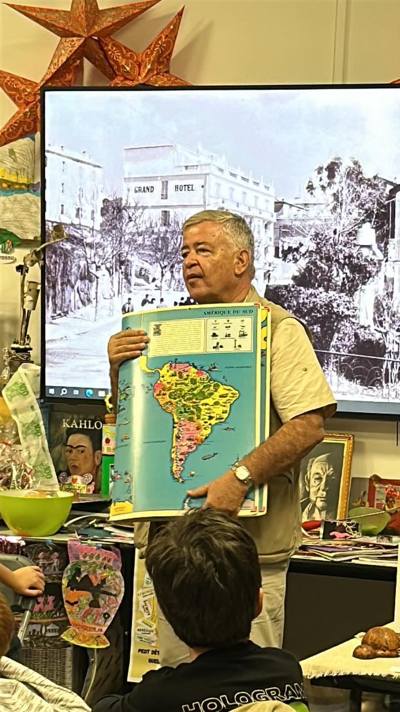 En fin de semaine dernière, la veille de la conférence, intitulée « A la rencontre des Enawenê Nawê…Un voyage humanitaire au Mato Grosso », organisée par le Centre Communal d’Action Sociale, dans le cadre du cycle « Les Rendez-Vous de la Culture et du Patrimoine », la médiatrice culturelle Bindu Masson accueillait, vendredi 16 octobre, en présence de l’écrivain, les élèves des classes de CP/CE1/CE2 de mesdames Garcia et Migliore, dans la salle communale « Micro-Folie ».
