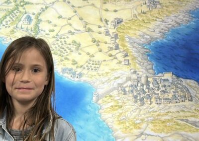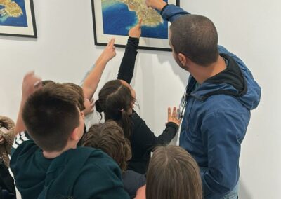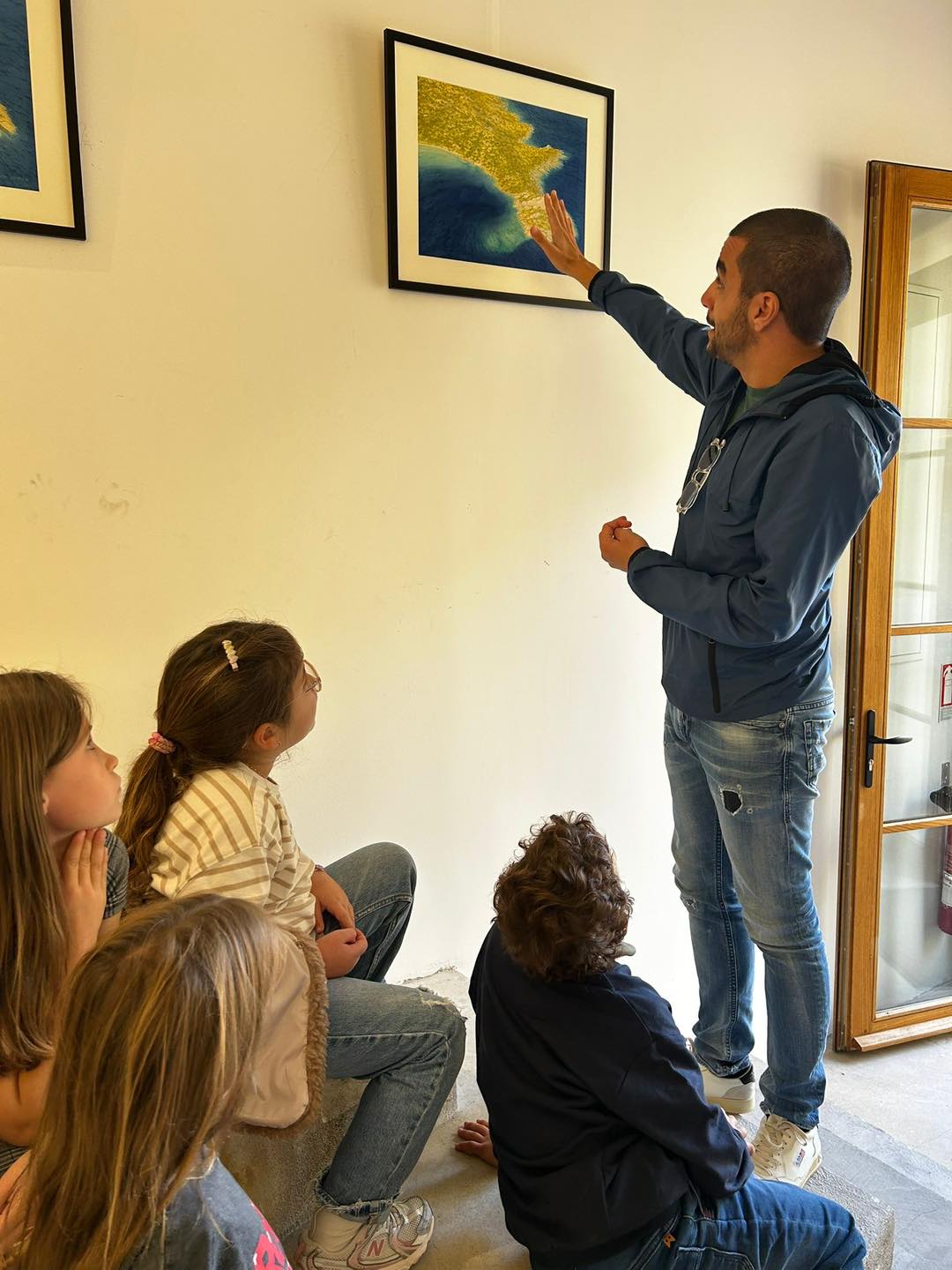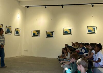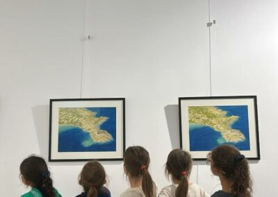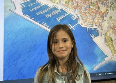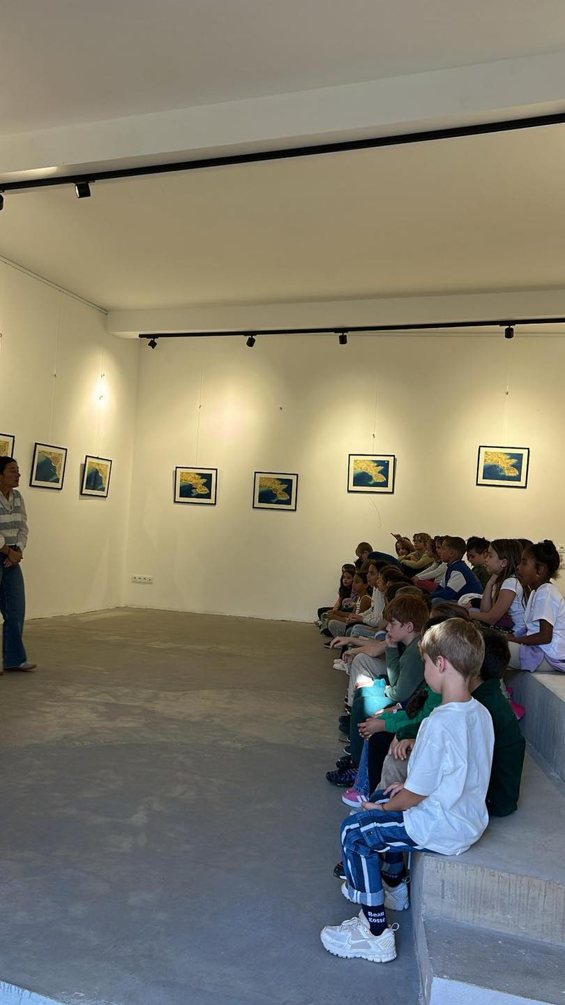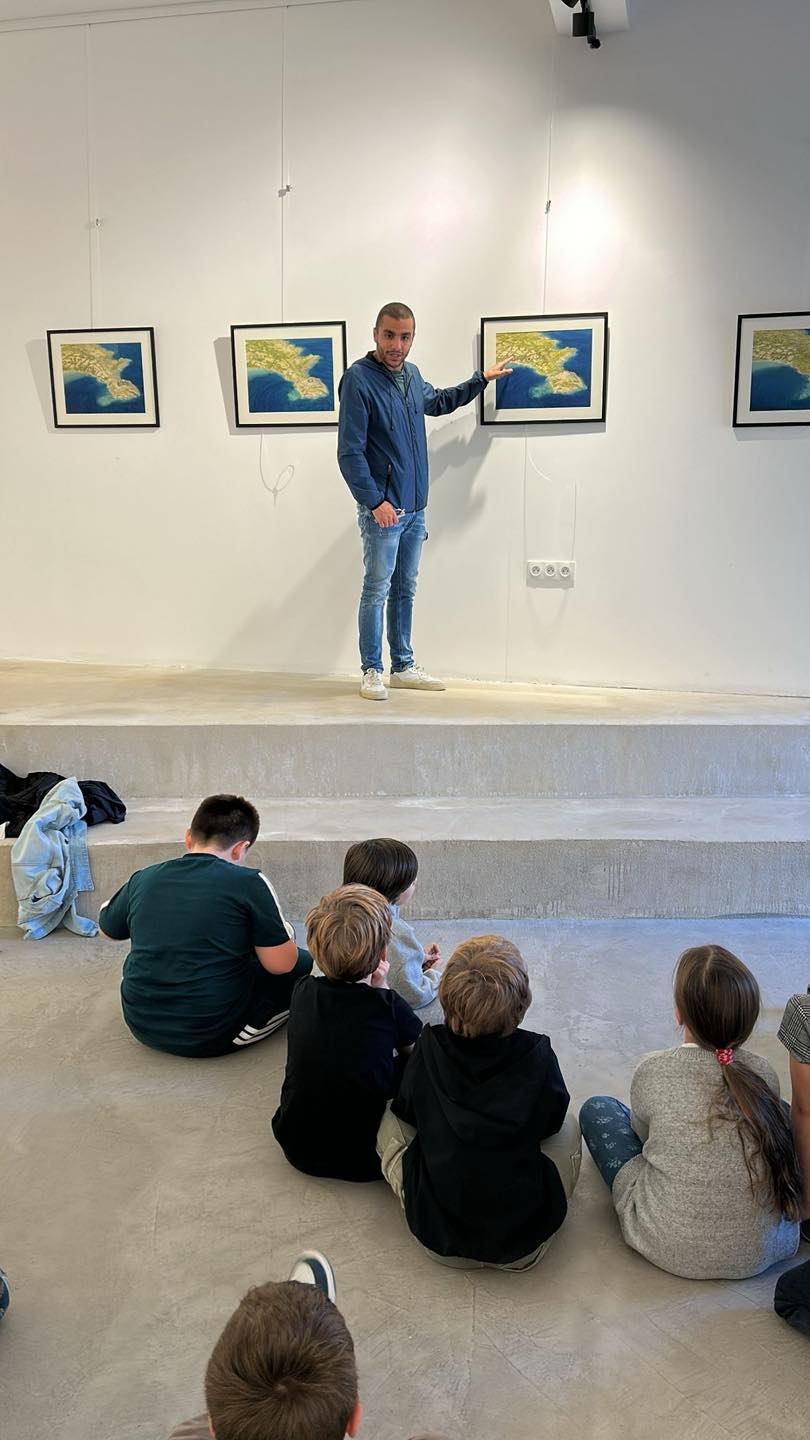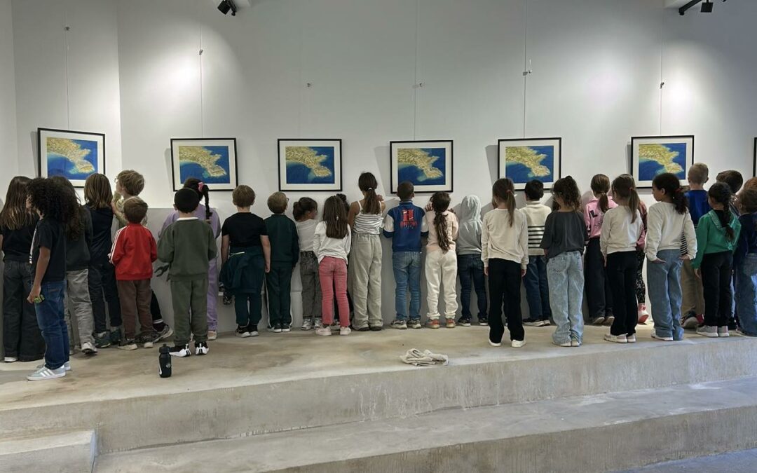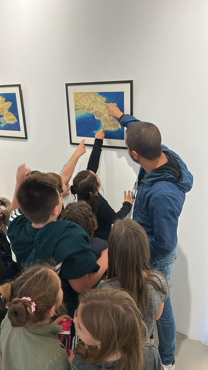 Les élèves des écoles primaires en visite au Bâtiment K, grâce au dispositif culturel communal « Micro-Folie », pour l’exposition d’esquisses historiques retraçant l’évolution de Calvi.