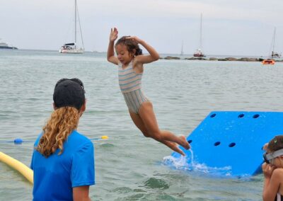 Les plus grands ont appris à nager avec un moniteur de nage expérimenté, dans la continuité de l’apprentissage lié à la période scolaire, tandis que les plus petits ont pu se sentir à l’aise dans l’eau grâce à une équipe encadrante.
