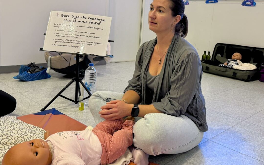 Cet atelier permet avant tout de soulager, d’apaiser mais également de stimuler votre bébé grâce aux conseils d’une professionnelle. Avec une huile naturelle confectionnée directement sur place, chaque parent a pu prendre le temps de mémoriser certains gestes de bien-être en se concentrant sur plusieurs parties du corps.