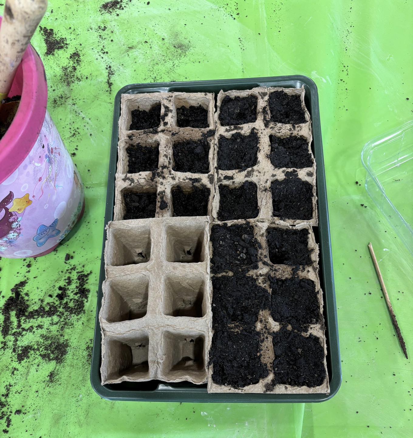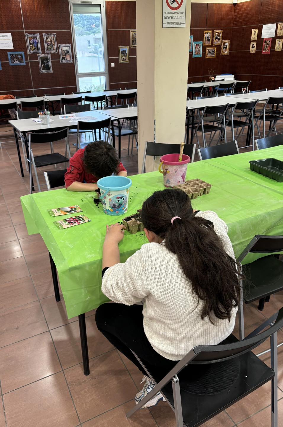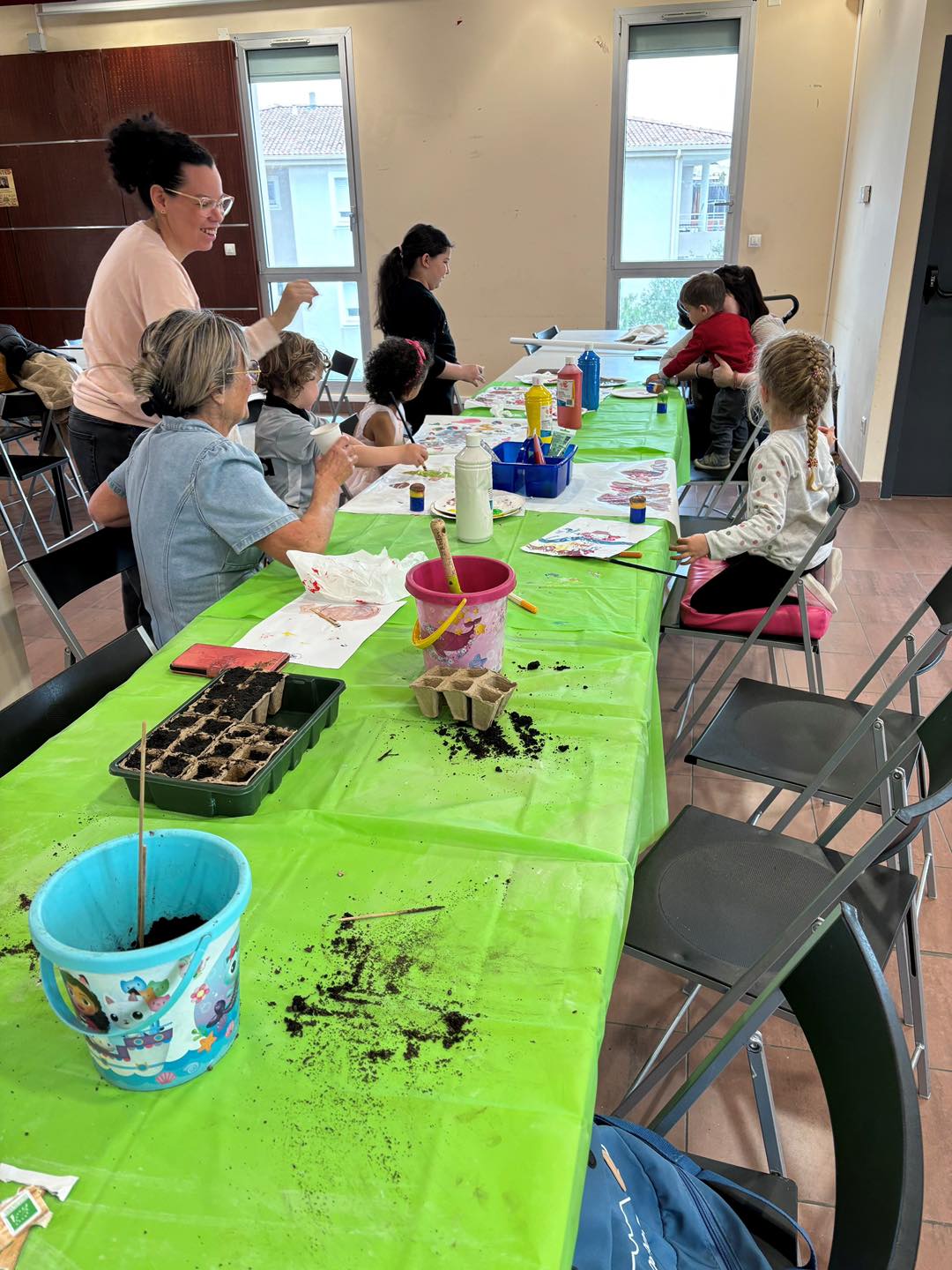 En raison du mauvais temps, le programme initial a été chamboulé mais les participants ont, malgré tout, pu faire des semis de melon et de radis et des activités manuelles, le tout dans la Salle Polyvalente.